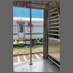 - Bild 2102-008 zeigt einen un-reservierbaren (wie am Schild "UR" ersichtlich) Wagen 2. Klasse. Offenbar rechnet man nicht mit ausländischen Fahrgästen. Den Zuglaufschildern fehlt die englische Schrift, so dass ich nachträglich nicht mehr weiß, von wo nach wo der Zug unterwegs war. Natürlich ist er nicht klimatisiert - es fehlen die Fensterscheiben - und der Platz in Tür scheint recht bequem zu sein.
