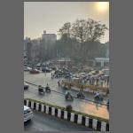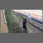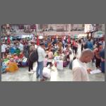 Im Anschluss an den Besuch fuhren wir mit einer "S-Bahn" in einen nördlichen Vorort. Eigentlich sollte es ein klimatisierter Zug sein, aber der fiel irgendwie aus. Auch unser lokaler indischer Führer hatte keine Informationen, so dass wir kurzerhand den nächsten Zug nahmen, der nicht klimatisiert war. Nicht klimatisiert bedeutet auch: keine Fensterscheiben. Es gibt lediglich eine Plastikjalousie für die Monsunzeit. Aber es waren ja über 30 Grad, da kann Durchzug nicht schaden. In Deutschland werden geschlossene Zugtüren vollkommen überbewertet. Ob klimatisiert oder nicht - bei den S-Bahnen waren alle immer auf. Natürlich auch während der Fahrt (Bild 1202-027). Der Nachteil waren allerdings die Gerüche. Was genau es war kann ich nicht sagen - aber im Gleisvorfeld zog es von draußen unerträglich rein. So einen Gestank habe ich noch nicht gerochen! Wie das die Leute, die da an den Gleisen gearbeitet haben, aushalten ist mir völlig unklar.