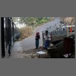 In Matheran war knapp zwei Stunden Zeit bis zur Rückfahrt. Beim Bummel durch den Ort war ich gerade zufälligerweise an einem Punkt, wo ich relativ gut einen fahrenden Zug ablichten konnte. Es gibt nämlich zwischen Matheran und dem "Parkplatz" bzw. Umschlagort Aman Lodge einen kleinen Pendelverkehr per Bahn. Ein solcher im Sandwich gefahrener Zug kam unverhofft daher (Bild 1302-014).