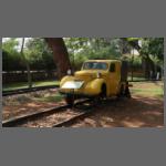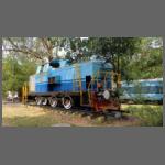 Alle ausgestellten Fahrzeuge waren Schmalspurfahrzeuge, meist 1000 mm. In Indien wurden mittlerweile fast alle Schmalspurbahnen auf 1676 mm-Breitspur umgebaut - oder stillgelegt. Mit Ausnahme der bekannten Gebirgsbahnen. Auch ein - nicht geöffnetes - Café in einem Wagen gab es (Bild 1502-005). Der Soldat / Polizist ist natürlich nicht echt. Aber was er da sollte, erschloss sich mir nicht.
