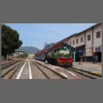 Der Versuch kurzfristig den Zug mit Tuk-Tuk zwecks Fotografierens zu begleiten, scheiterte leider und so fuhren wir auch wieder mit dem Zug talwärts (Bild 1302-025). Immerhin diesmal in der Plüschklasse. Noch relativ weit oben kommt man an einem Ganesha-Tempel vorbei (Bild 1302-028). In einer Eisenbahnromantikfolge über diese Bahn berichtete man vor geraumer Zeit, dass dieser Tempel durch einen Lokführer der Bahn in seiner Freizeit geschaffen wurde, indem die Figur aus dem Felsen herausgehauen und bemalt wurde.