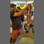 Bevor wir den Tag an mehreren Streetfood-Ständen ausklingen ließen (war sehr lecker), besuchten wir noch den großen Minakshi-Tempel in Madurai, der seit vielen Jahren restauriert wird und deren große Tortürme seit langem eingerüstet sind (Bild 2002-027). Dadurch sieht man die farbenfrohe Gestaltung leider nicht richtig. Dieser Tempel ist so heilig, dass fotografieren im Inneren verboten ist. Und da man den Besuchern nicht vertraut, heißt es nicht nur Fotoapparate abgeben, sondern auch die Handys. Es bekamen aber hinterher alle ihr Gerät zurück.