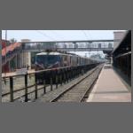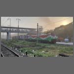 Bild 2302-002 wäre an sich des Zeigens nicht wert, aber die Ellok ist in den indischen Nationalfarben gehalten. Bereits am Vorabend hatte ich eine Diesellok mit dieser Gestaltung (siehe vorherige Mail Bild 2202-031) gesehen. Dies blieben aber die einzigen zwei in orange-weiß-grün.