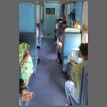 Dabei zeigt uns die Indische Staatsbahn zunächst was eine Harke ist. Unsere Schlafplätze waren nicht verfügbar, weil angeblich ein kleinerer Wagen als vorgesehen eingereiht wurde... Nach etwas Aufregung erhielten wir dann gleichwertige Ersatzplätze in einem anderen Wagen zugewiesen. Und nach 15 Minuten konnten wir über den Schreck sogar wieder lachen (Bild 1802-018).