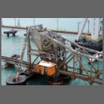 Während die neue Brücke eine Hubbrücke ist, war die alte eine Drehgelenkbrücke. An dieser wurde gearbeitet. (Bild 2102-065). Es könnten die ersten Zerlegearbeiten gewesen sein.