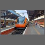 Chennai Central ist ein Kopfbahnhof. Daher konnte ich den modernen Tages-Zug "Vande Bahrat Express" nur schlecht ablichten (Bild 2302-015). Die Nachtzugvariante in blau hatten wir in Trivandrum gesehen (siehe das dortige Video). Bild 2302-016 zeigt eine Werbung mit diesem Zug. Die Landschaft ist unverkennbar schweizerisch, was uns wieder zu Bild 2302-004 bringt. Die Kooperation Indien - Schweiz ist augenfällig. In Chennai ist die ICF (Integral Coach Factory) ansässig. Und auch die macht mit Schweizer Fahrzeugen Werbung (Bild 2402-002).