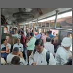 Mit unserem Bus in Neral angekommen, wurde erst einmal der Breitspurteil des Bahnhofs unter die Lupe genommen. Der Bahnhof liegt an der Vorortlinie von Mumbai nach Karjat. Es begegneten sich gerade zwei Züge, die maximal voll waren. Zudem haben die Züge an den jeweiligen Enden besondere Abteile, die den Frauen vorbehalten sind (Bild 1302-005). Soweit gesehen, wurden dies von den Männern strikt beachtet! Allerdings sind die Frauenabteile zumindest scheinbar voller als der Rest des Zuges.