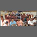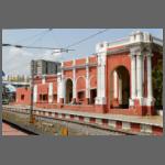Aber unser Führer wusste etwas Rat. Wir besuchten zunächst den Bahnhof Chennai-Egmore (Bild 2402-024). Für den Fernverkehr ist es ein Kopfbahnhof, für den Stadtverkehr ein Durchgangsbahnhof. Wir fuhren zunächst mit einem solchen Zug, bis zum Endpunkt Chennai-Beach (Bild 2402-034). Von dort dann mit unserem Bus nach dem Royapuram. Dort begann 1856 in Südindien das Zeitalter der Eisenbahn. Das Bahnhofsgebäude (Bild 2402-051) soll aus dieser Zeit stammen und ist somit das älteste erhaltende in ganz Indien. In Royapuram ist auch das Depot für die Reisezuglokomotiven für Chennai. 102 Lokomotiven der neuesten Bauart WAP-7 sind hier zu Hause (lt. Wikipedia). Sie zeichnen sich durch eine Farbgebung analog des DB-Fernverkehrs aus (Bild 2402-038).
