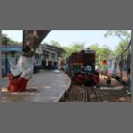 Von Neral fahren pro Tag zwei Zugpaare nach Matheran. Wir fuhren mit dem zweiten Zug des Tages, der von einer Diesellok in Dampflokoptik (Bild 1302-010) bereit gestellt wurde. Der Nummer nach gehört sie in die Reihe der relativ neu und in Indien gebauten Dieselloks, die ihrerseits die erste Diesellokgeneration ablösten, welche seinerzeit von der Firma Jung in Deutschland gebaut wurden. Die davor eingesetzten Dampfloks stammten ebenfalls aus Deutschland und wurden von Orenstein & Koppel gebaut. Welchen Sinn die Pseudodampflok hat muss offen bleiben.
