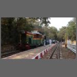 In Matheran war knapp zwei Stunden Zeit bis zur Rückfahrt. Beim Bummel durch den Ort war ich gerade zufälligerweise an einem Punkt, wo ich relativ gut einen fahrenden Zug ablichten konnte. Es gibt nämlich zwischen Matheran und dem "Parkplatz" bzw. Umschlagort Aman Lodge einen kleinen Pendelverkehr per Bahn. Ein solcher im Sandwich gefahrener Zug kam unverhofft daher (Bild 1302-014).