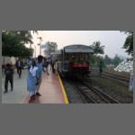 Die Bergfahrt dauert etwa 2,5 Stunden. Bei dieser Fahrzeit fahren natürlich nur Touristen mit dem Züglein. Die Einheimischen nehmen das Tuk-Tuk. Ausweislich eines Plakates dauert das nur 20 Minuten und kostet 100 Rupien (ca. 1 Euro). Teurer ist der Zug aber auch nicht. Es werden mehrere Unterwegshalte eingelegt. Bild 1302-013 zeigt unseren Zug bei einem solchen in Water Pipe. Fliegende Händler sorgen für Speis und Trank. Und es gibt sogar WC an diesen Bahnhöfen.
