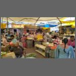 In Madurai machten wir am Nachmittag eine Rikscha-Fahrt (es waren die einzigen Rikschas, die ich überhaupt während der Reise gesehen habe) durch das Zentrum. Dabei kamen wir auch an diversen Märkten vorbei. Einen einfachen Gemüsemarkt zeigt Bild 2002-020. Der überdachte Markt (Bild 2002-023) war da schon etwas Besseres. Man vergleiche. Auch ein Obststand verdient Aufmerksamkeit (Bild 2002-024).