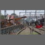 Während die neue Brücke eine Hubbrücke ist, war die alte eine Drehgelenkbrücke. An dieser wurde gearbeitet. (Bild 2102-065). Es könnten die ersten Zerlegearbeiten gewesen sein.