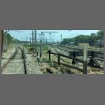 Auf dem letzten Bahnhof vor der Brücke mussten wir einen entgegenkommenden Messzug abwarten (Bild 2102-050). Auf dem Schild steht "Glourios 100 Years of elektric Traction (1925 - 2025)". Auf demselben Bahnhof, nur auf der anderen Seite, stand ein Aufenthaltswagen einer Stopfmaschine (Bild 2102-053). Ich fand die Beschriftung interessant.