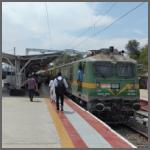 Bild 2302-002 wäre an sich des Zeigens nicht wert, aber die Ellok ist in den indischen Nationalfarben gehalten. Bereits am Vorabend hatte ich eine Diesellok mit dieser Gestaltung (siehe vorherige Mail Bild 2202-031) gesehen. Dies blieben aber die einzigen zwei in orange-weiß-grün.