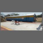 Alle ausgestellten Fahrzeuge waren Schmalspurfahrzeuge, meist 1000 mm. In Indien wurden mittlerweile fast alle Schmalspurbahnen auf 1676 mm-Breitspur umgebaut - oder stillgelegt. Mit Ausnahme der bekannten Gebirgsbahnen. Auch ein - nicht geöffnetes - Café in einem Wagen gab es (Bild 1502-005). Der Soldat / Polizist ist natürlich nicht echt. Aber was er da sollte, erschloss sich mir nicht.
