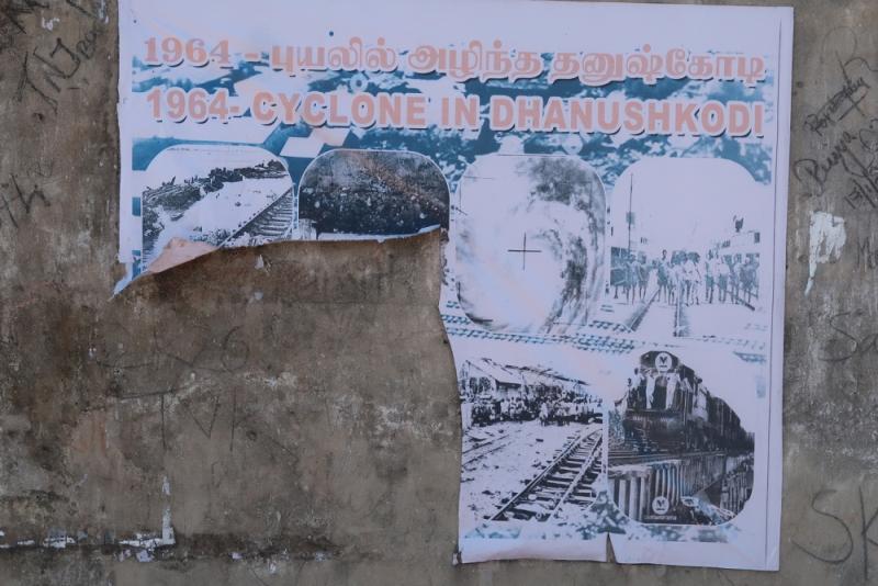 Am 22. Dezember 1964 wurde Dhanushkodi durch einen verheerenden Zyklon und einem damit einher gehenden Tsunami völlig zerstört. Ein gerade in den Bahnhof einfahrender Zug wurde erfasst; hierbei starben 128 Menschen. Allerdings wurde dann nichts mehr aufgebaut. Es blieben jedoch die Ruinen stehen. Nur im englischsprachigen Wikipedia gibt es dazu einen Eintrag.