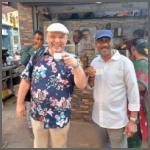 Der anschließende Rundgang durch die Gassen durch George Town, der ursprünglichen Ansiedlung der Briten, sorgte auch für viele Fotos, die den Rahmen hier sprengen würden. Ausnahme soll die nur die Teepause mit unserem einheimischen tamilischen Führer sein (Bild 2302-021).