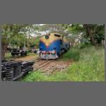 Der Versuch kurzfristig den Zug mit Tuk-Tuk zwecks Fotografierens zu begleiten, scheiterte leider und so fuhren wir auch wieder mit dem Zug talwärts (Bild 1302-025). Immerhin diesmal in der Plüschklasse. Noch relativ weit oben kommt man an einem Ganesha-Tempel vorbei (Bild 1302-028). In einer Eisenbahnromantikfolge über diese Bahn berichtete man vor geraumer Zeit, dass dieser Tempel durch einen Lokführer der Bahn in seiner Freizeit geschaffen wurde, indem die Figur aus dem Felsen herausgehauen und bemalt wurde.