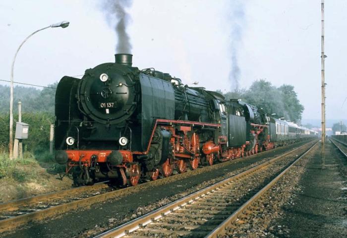 01 2137 und 01 1531 vor dem D 27241 "Nostalgie-Istanbul-Orient-Express" am 08. September 1988 in Helmstedt