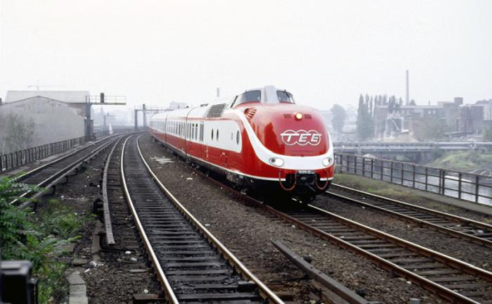 der erste IC 130 "MAX LIEBERMANN" auf der Berliner Stadtbahn vor Jannowitzbrücke, 01. August 1990