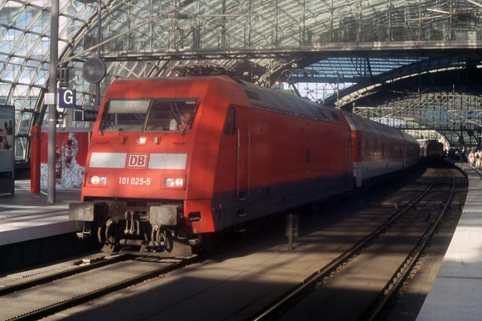 101 025 vor dem NZ 243 in Berlin Hauptbahnhof, 26. Juli 2006